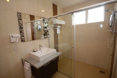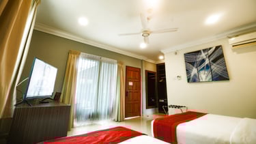 Relax in our tastefully decorated, air-conditioned Executive Double rooms with air-conditioning, ceiling fans and tiled floors. Double rooms come either with 1 king bed or 2 single beds.